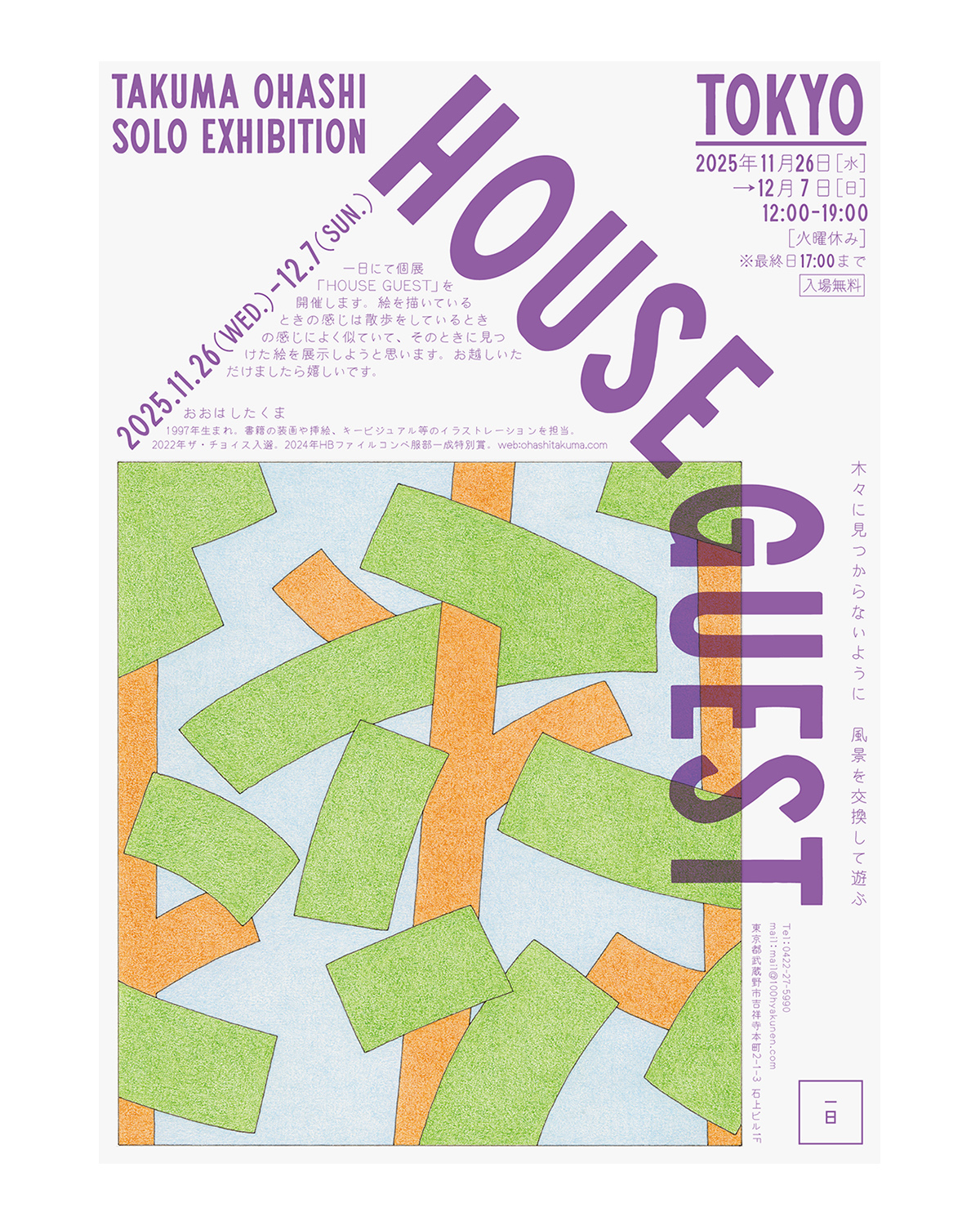 会場:一日 武蔵野市吉祥寺本町2-1-3 石上ビル1F 12:00-19:00 最終日は17:00まで
